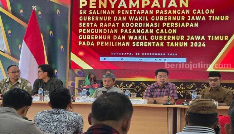 Sementara itu, Ketua KPU Jatim, Aang Kunaifi mengatakan, berdasarkan proses verifikasi berkas baik persyaratan pencalonan, syarat calon, kesehatan dan syarat lainnya tiga bapaslon yang mendaftar memenuhi syarat untuk maju kontestasi Pilgub Jatim 2024.