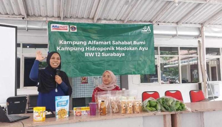 Surabaya (beritajatim.com) – UMKM Kampung Hidroponik RW 12 Kelurahan Medokan Ayu, Surabaya, kembali mendapatkan pendampingan dari Alfamart melalui Program Kampung Alfamart Sahabat Bumi (KASB). Kali ini, fokus pendampingan diarahkan pada pentingnya desain kemasan yang menarik untuk meningkatkan daya saing produk-produk olahan hidroponik mereka, seperti keripik bayam brazil, stik daun telang, dan minuman teh daun telang.
