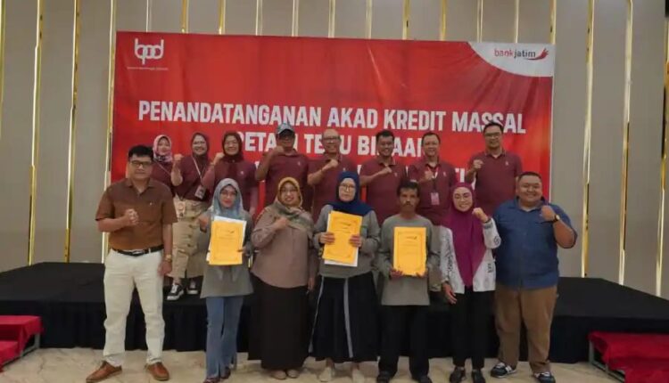 Madiun (beritajatim.com) – Dalam rangka meningkatkan kesejahteraan petani tebu, PT Bank Pembangunan Daerah Jawa Timur Tbk (bankjatim) bersama PG Rajawali I menggelar akad kredit massal yang melibatkan 78 debitur petani tebu binaan.