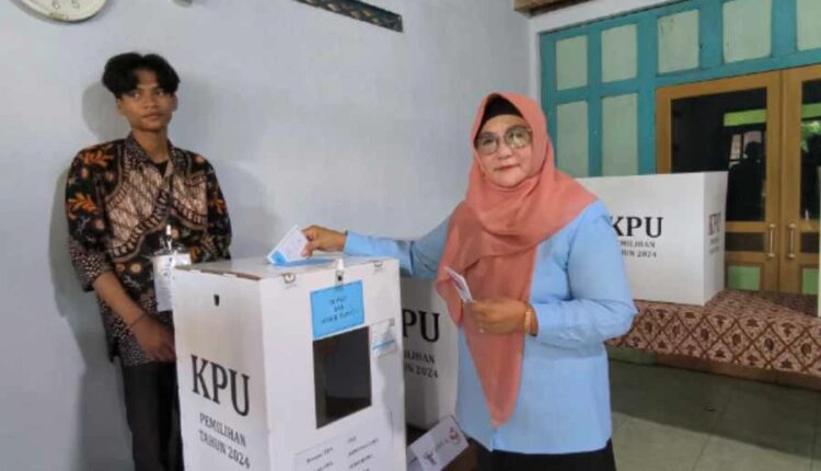 Magetan (beritajatim.com) Calon Bupati Magetan Nomor Urut 1 Nanik Endang Rusminiarti atau Bunda Nanik Sumantri menggunakan hak suara pada momen Pilbup 2024 Magetan, Rabu (27/11/2024). Bunda Nanik datang ke Tempat Pemungutan Suara (TPS) 002 Desa Kedungguwo, Kecamatan Sukomoro, Kabupaten Magetan.