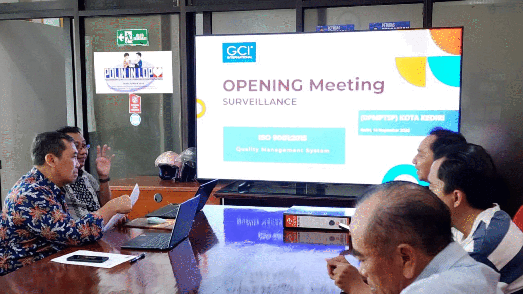 Jatimpedia.co| 25 November 2025. Kota Kediri – Dalam upaya terus meningkatkan mutu pelayanan publik dan menjamin kepuasan masyarakat, Dinas Penanaman Modal dan Pelayanan Terpadu Satu Pintu (DPMPTSP) Kota Kediri kembali menunjukkan komitmennya dengan melaksanakan kegiatan audit surveillance ISO 9001:2015.