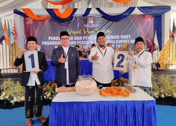 “Alhamdulillah, tahapan pengundian nomor urut pasangan calon berlangsung lancar. Pasangan Ali Fikri-Unais Ali Hisyam mendapatkan nomor urut 1, dan pasangan Fauzi-Imam Hasyim mendapatkan nomor urut 2,” kata Komisioner KPU Sumenep, Abdul Aziz.