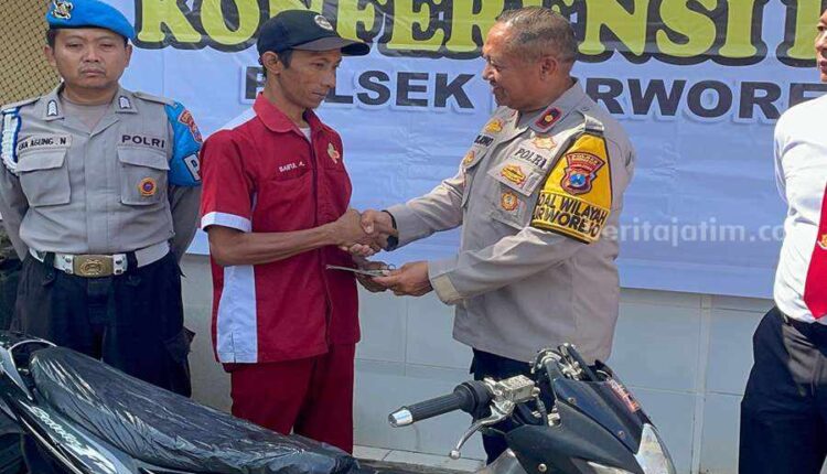 Pasuruan (beritajatim.com) – Kabar baik bagi Saiful Arip, warga yang menjadi korban pencurian sepeda motor. Polsek Purworejo berhasil mengamankan dan mengembalikan sepeda motor miliknya, Suzuki FU 150 SCD tahun 2009 berwarna abu-abu hitam, melalui kebijakan pinjam pakai sambil menunggu proses hukum selesai.