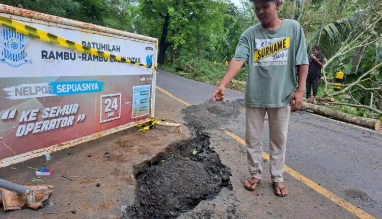 Blitar (beritajatim.com) – Jalan Nasional Blitar-Malang di Kecamatan Selorejo Kabupaten Blitar nyaris putus. Pasalnya badan jalan tersebut mengalami retakan dan ambles sedalam 40 centimeter.