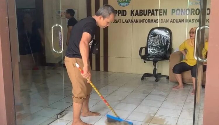 Kantor Diskominfo Ponorogo Kebanjiran, Pegawai Bersihkan Sisa Air