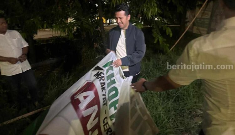 Surabaya (beritajatim.com) – Cawagub Jatim Nomor Urut 2, Emil Elestianto Dardak turun langsung ikut merapikan baliho kampanye di masa tenang, Minggu (24/11/2024) dinihari.