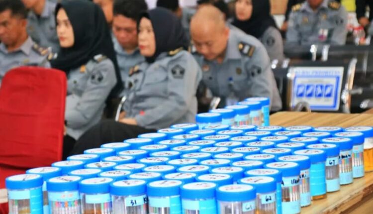 Banyuwangi (beritajatim.com) – Puluhan pegawai Lembaga Pemasyarakatan (Lapas) Kelas IIA Banyuwangi jalani tes urine, Kamis (5/12/2024).