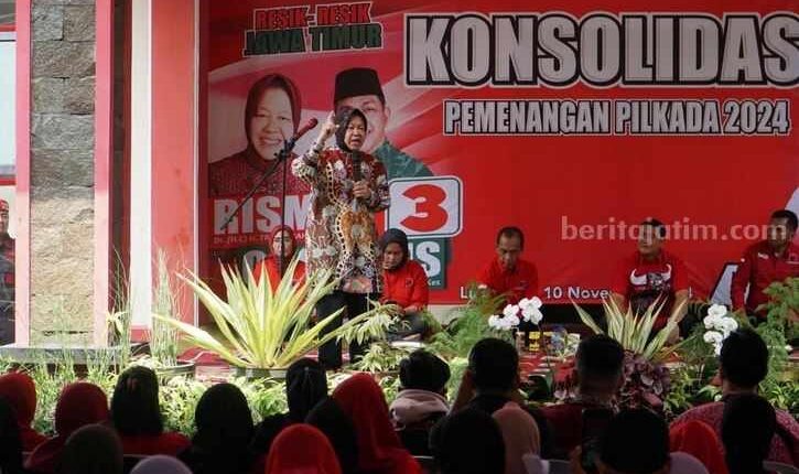 Risma kemudian melanjutkan pidatonya, menekankan pentingnya kepekaan sosial bagi seorang pemimpin. “Seorang pemimpin harus peka dan cepat bertindak ketika ada rakyat yang membutuhkan. Saya harap kita semua di sini, setiap kader, harus cepat bergerak ketika ada rakyat di sekitar yang kurang mampu,” ujarnya kepada peserta.