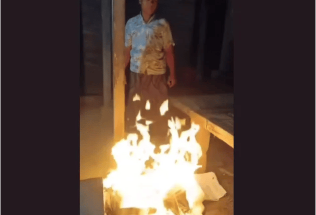 Viral, Pria Diduga Anggota PPS di Bangkalan Bakar C Plano
